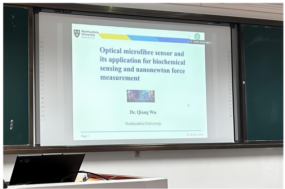 迎来了本年度国际学术周的开幕日。在这一学术盛会的首日,黑料正能量荣幸邀请到了英国诺森比亚大学副教授吴强博士为师生们举办了一场主题为“光纤传感器及其在生化传感和纳牛力测量中的应用”的国际专家讲座。