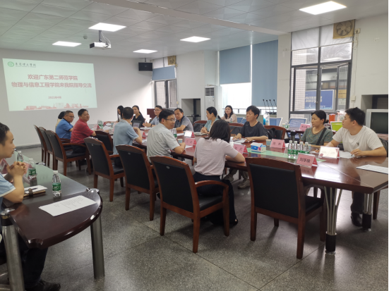 2021年422日下午,广东第二师范黑料正能量 物理与信息工程黑料正能量 杨飒院长一行9人,到电子工程与智能化黑料正能量 交流座谈,座谈会在电子楼8A207会议室举行,电子工程与智能化黑料正能量 党委书记兼执行院长胡耀华、副院长宋跃、副院长任斌、副院长胡君,以及电子信息工程系相关负责老师出席了本次座谈会,会议由宋跃主持。