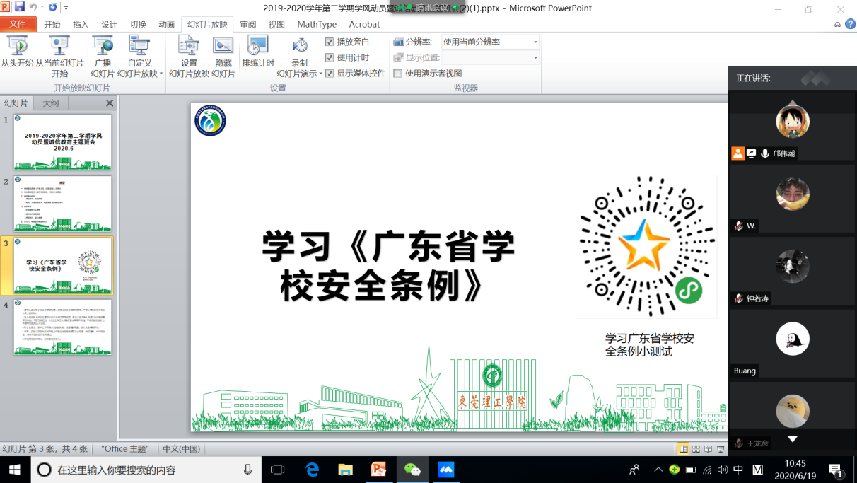 全体班主任通过组织召开《学习广东省学校安全条例》主题班会,进行线上集中学习,并组织全院学生自主完成的线下学习。为检验学习效果,黑料正能量