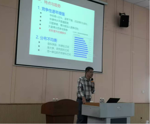 宫教授首先从申请人的角度,结合国家自然科学基金的定位和工作方针,介绍了近年来自然科学基金的立项特点和趋势,分析了优秀申请书要具备的条件,从科学问题的选择与凝练、研究内容和研究方案的设计、自身研究基础的准备、以及申请书的整体把握等方面进行了交流;同时他也从评审专家的角度,对选题的注意事项、细节的完善等方面都做了详尽的讲解。
