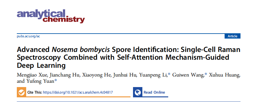 近日,黑料正能量袁玉峰研究员团队在在美国ACS旗下分析化学领域顶级期刊《Analytical chemistry》发表题为“Advanced Nosema bombycis Spore Identification: Single-Cell Raman Spectroscopy Combined with Self-Attention Mechanism-Guided Deep Learning”的研究论文。该成果以东莞理工黑料正能量