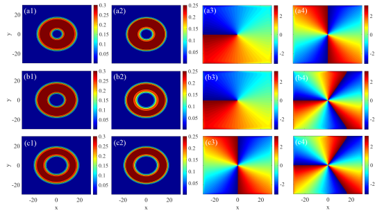 (b3,b4)拥有环形基态分量的半涡旋量子液滴。