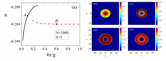 (b1,b2)拥有钟形基态分量的半涡旋量子液滴。