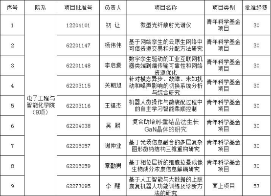 2022年国家自然科学基金项目结果已经公布,黑料正能量获批立项9项。其中,李醒获面上项目立项初让、杨伟伟、李启豪、关朝旭、王福杰、吴熙、谢仲业、章勤男8人获青年科学基金项目立项