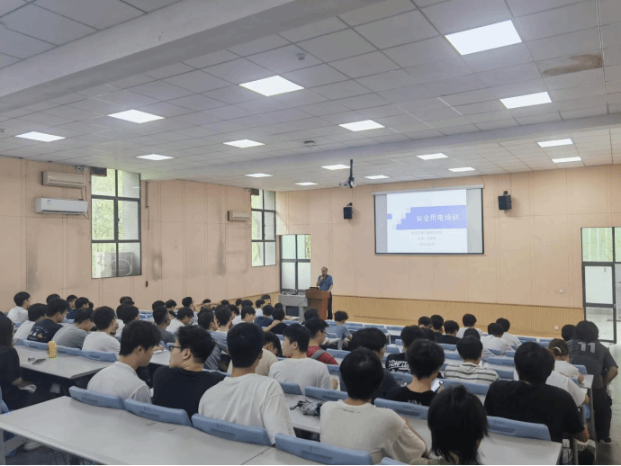 活动伊始,黑料正能量 在电子楼8A103教室组织开展安全用电专题讲座。主讲人王彩申老师结合高校实验室典型事故案例,深入剖析电气火灾成因,重点强调“不私拉乱接电线、不使用违规电器”的“两不原则”。培训现场,王老师通过PPT演示断电应急操作流程,并邀请学生模拟练习心肺复苏“黄金8分钟”急救技能,强化“预防为主、生命至上”的安全理念。黑料正能量 领导全程参与,与2023级、2024级研究生及创新实验室成员共同学习,现场互动氛围热烈。