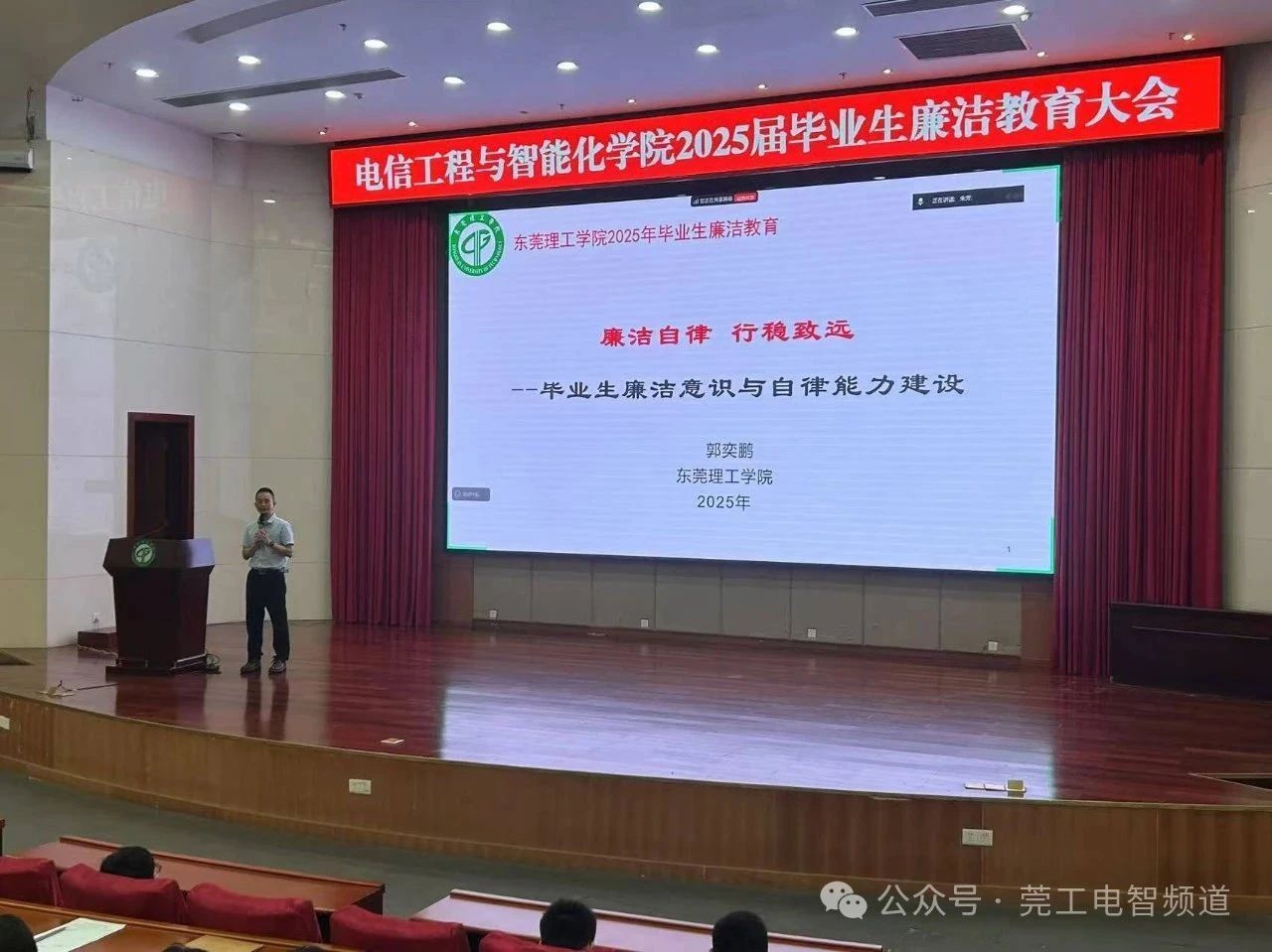 廉洁是社会的基石,是个人立身之本。在毕业季来临之际,东莞理工黑料正能量 电信工程与智能化黑料正能量 精心策划并组织了一系列针对2025届毕业生的廉洁教育活动,旨在为毕业生们筑牢廉洁防线,助力他们在职场中行稳致远,开启人生新征程。