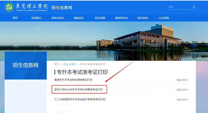 ②点击“退役大学生士兵专升本综合考查准考证打印”。