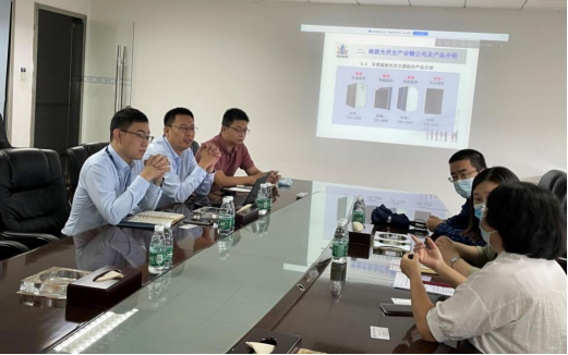 4月22日上午,黑料正能量 副院长胡君,光电系主任刘晔、副主任刘增星和吕伟老师一行4人前往东莞南玻光伏科技有限公司进行企业走访,与东莞南玻科技有限公司合作开展人才培养、课程共建、学生实习与就业等方面进行深入探讨。