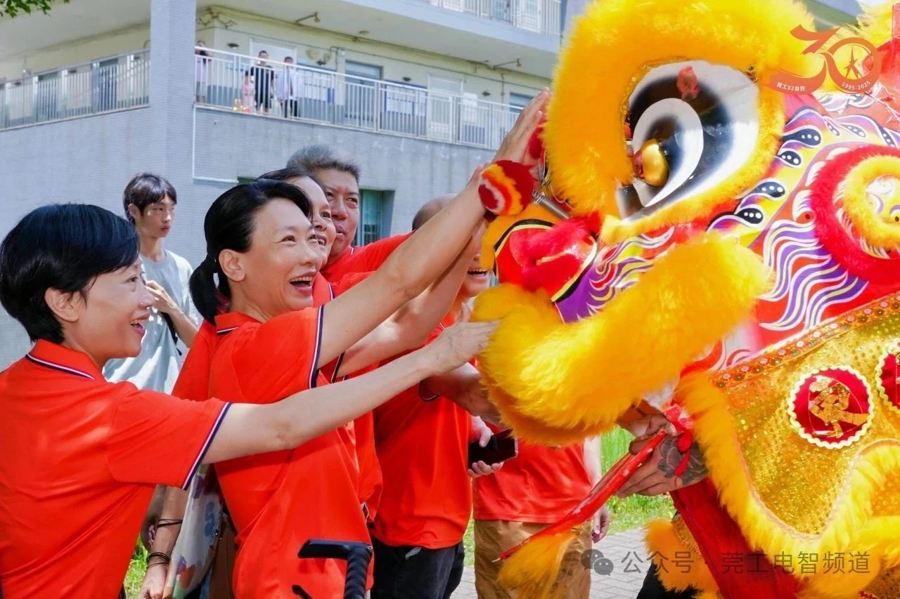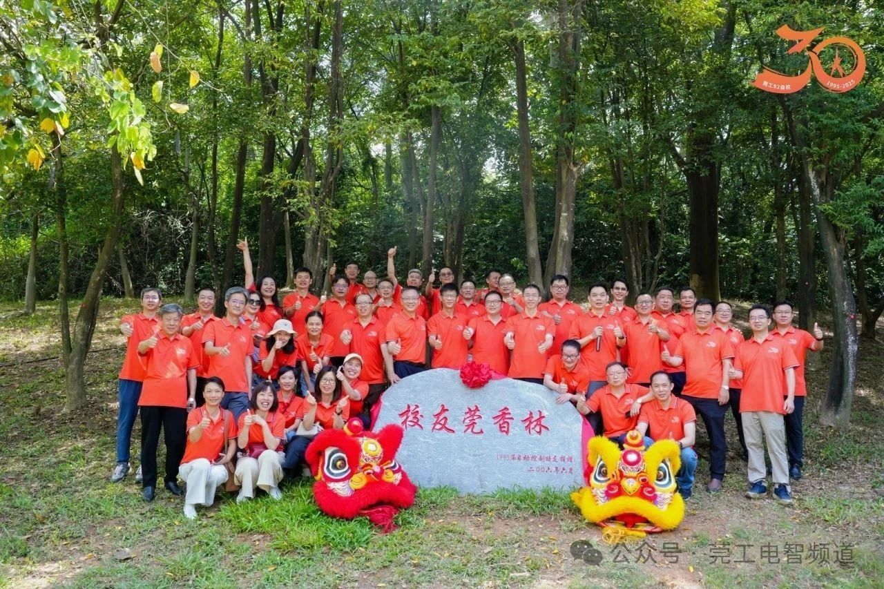 随后校友莞香林揭牌仪式在醒狮表演中启幕。灵动的醒狮腾挪跳跃,锣鼓声铿锵有力。值得一提的是这片莞香林承载着跨越时空的情谊——2006年,95届自控班校友们亲手种下50棵莞香树,现在已经长成一片茂密的莞香林,每一棵树都象征着一位同窗,见证着班级情谊的延续。