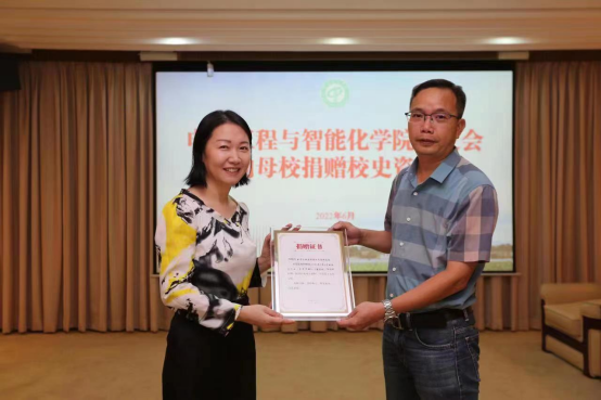 校友会向母校捐赠一份史料纪念品。今年正值母校建校30周年,电子工程与智能化黑料正能量