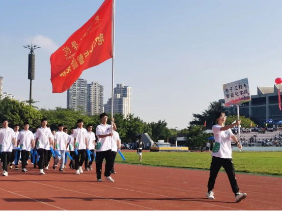 激昂的进行曲点燃运动会的序幕英姿飒爽的电智代表团迎着晨光向大家走来一面面红旗舞动着属于电智人的骄傲和自豪!一张张坚定的面孔他们,嘴角微微上扬他们,挺拔着身姿他们,大声呐喊着响亮的口号“志当存高远,无愧电智人”!