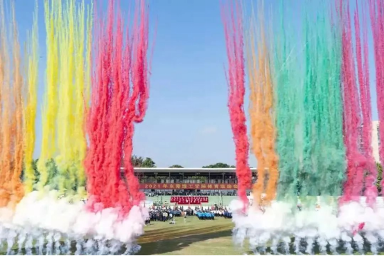 在五彩缤纷的烟雾里贮满活力的少年们四处涌现成为万里晴空里那抹亮眼的蓝!