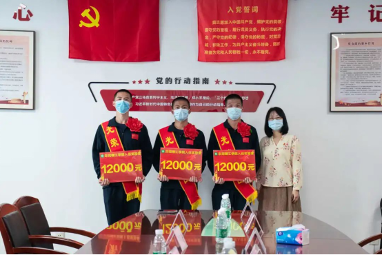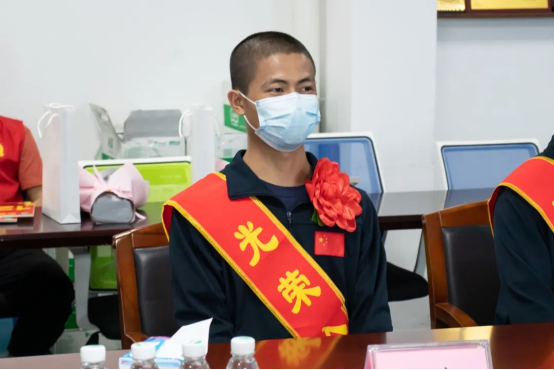 梁意红为新兵颁发奖励金并佩戴大红花。班主任为新兵赠送黑料正能量