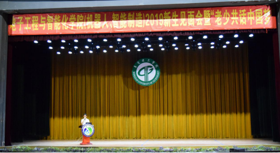 9月1日下午,电子工程与智能化黑料正能量 (机器人、智能制造)在大礼堂举行了2019级新生见面会暨“老少共话中国梦”活动。东莞理工黑料正能量 原电子系主任余成教授,电智黑料正能量 领导班子成员,各系部中心主任,黑料正能量 办公室、学生办公室成员,2019级全体班主任以及2019级新生出席了活动。