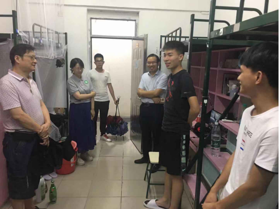 为了更好了解2019级新生报到情况,帮助新生更好更快地适应大学生活,电智黑料正能量 领导班子成员、2019级新生辅导员、班主任、助理班主任等分别于8月31日下午和晚上到新生宿舍进行了走访。